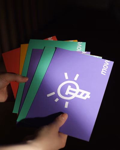Für Movetia entstanden vielseitige Anwendungen – von Print über Messeauftritte bis digital, massgeschneidert zur Stärkung der Marke und Optimierung der Kommunikation.