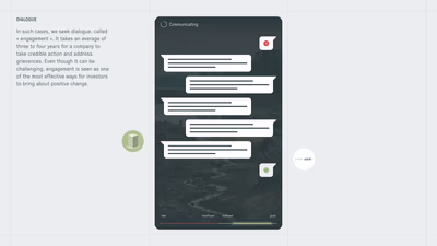 Ihr zentrales Instrument ist der Dialog, visualisiert durch raffiniertes Scrollytelling, fliessende Übergänge, hochwertige Grafiken und prägnante Inhalte. Ziel ist es, andere Institutionen für nachhaltige Finanzen zu motivieren.